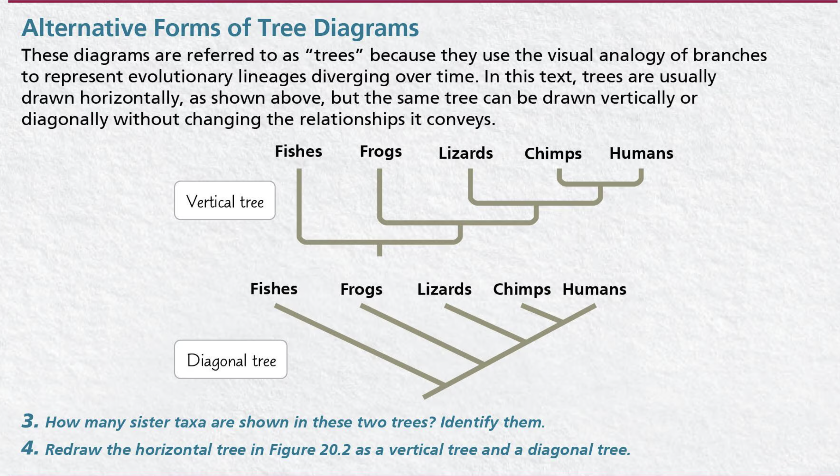 The evolutionary history of a group of organisms can be represented in a branching diagram called a phylogenetic tree