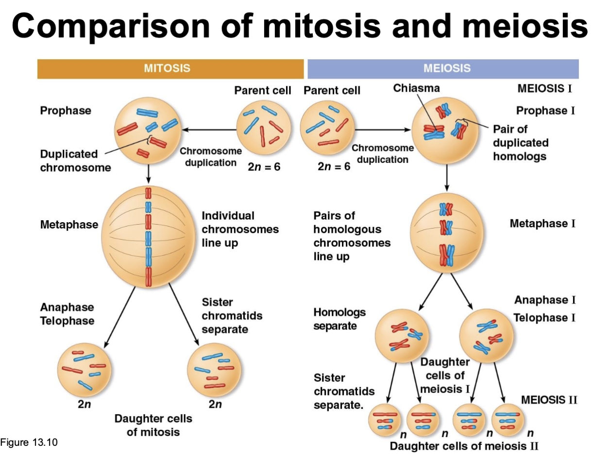 Meiosis 1: Homologous paired chromosomes separate (diploid—→haploid)