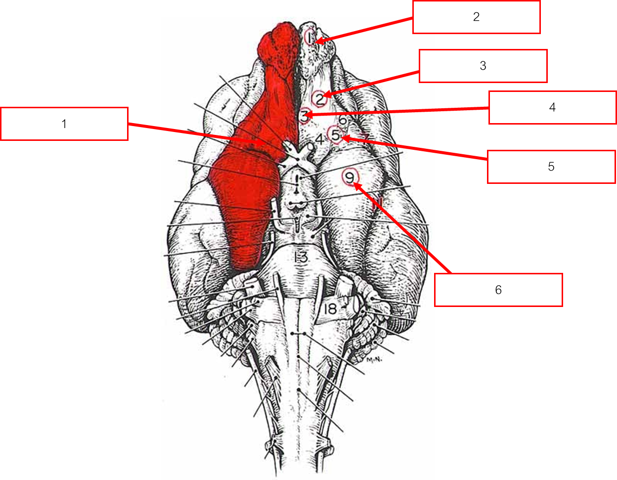 สมองด้าน ถูกผ่าแบบ midsagittal plane