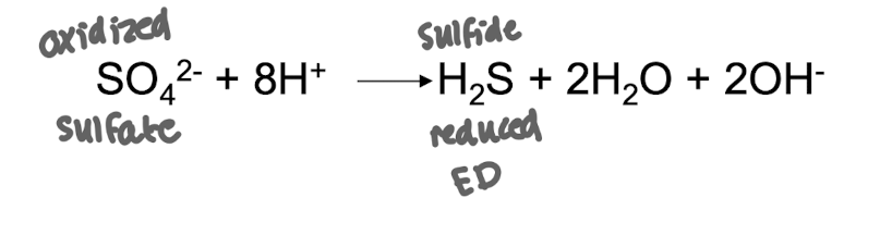 Sulfide (H2S) , produced by sulfate reducing bacteria, under anaerobic growth conditions.