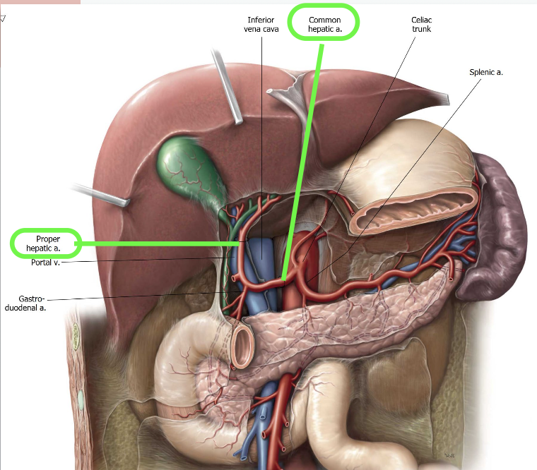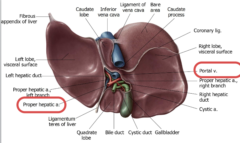 Proper hepatic artery – brings 20–25% of blood to the liver