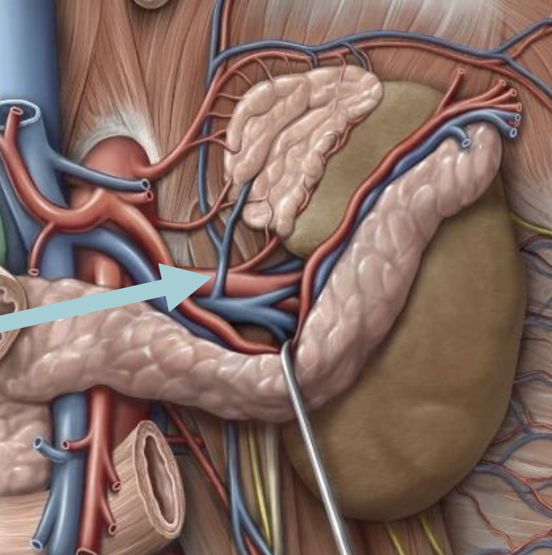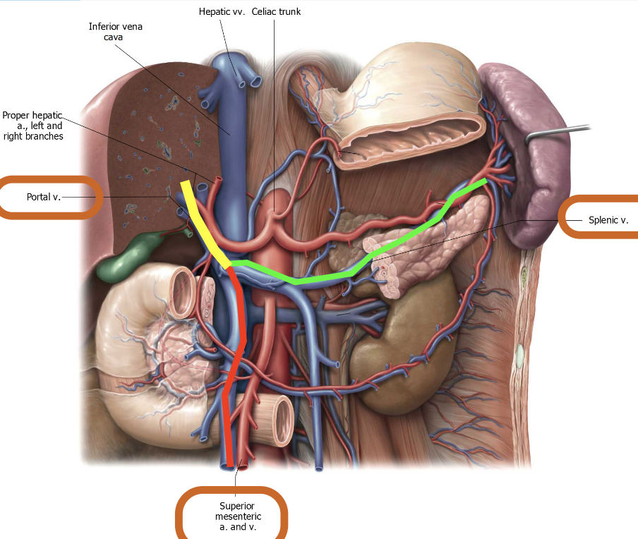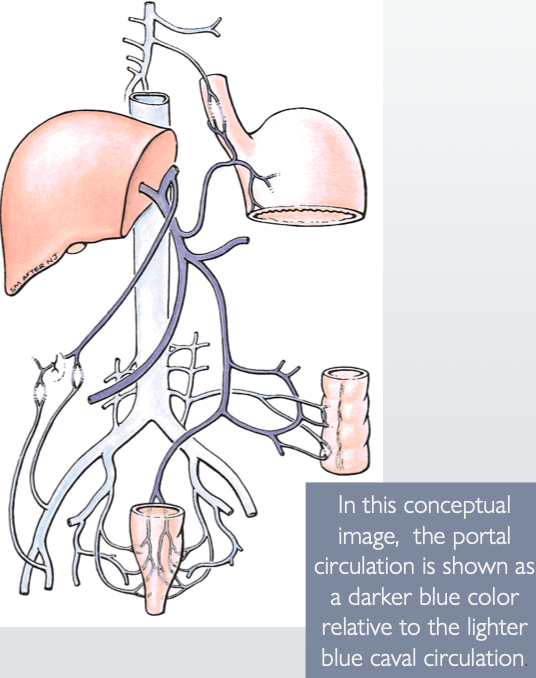 → drains blood from the entire GI system in the abdominopelvic area via contributions from the splenic and superior mesenteric veins