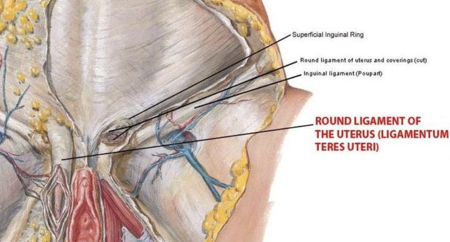 Passes the round ligament of the uterus (female analogue of spermatic cord)