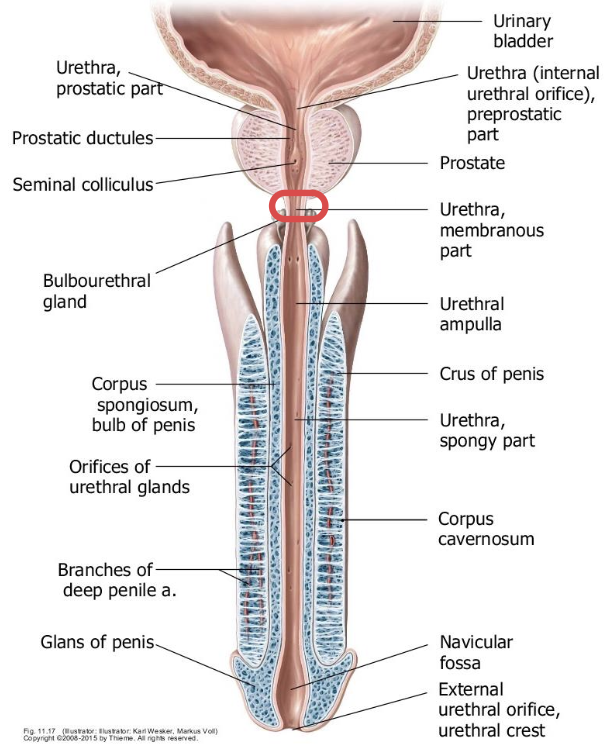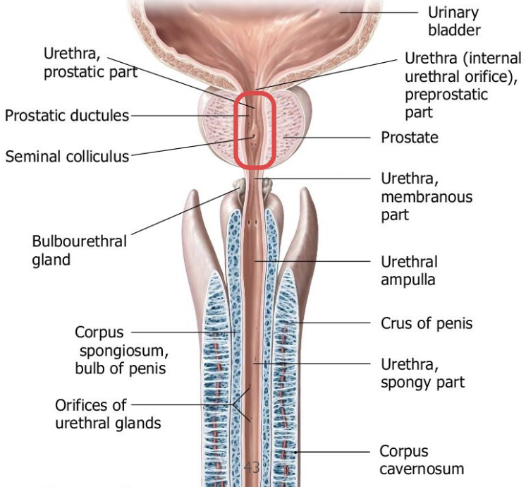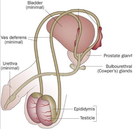 → Fibromuscular tube carrying sperm from testes to prostate