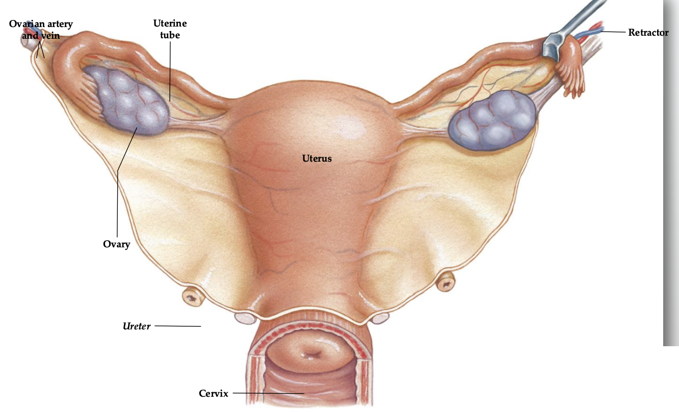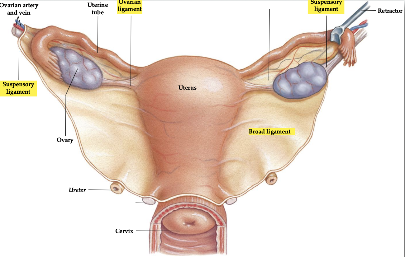 Broad ligament: sheet-like, provides major support to pelvic organs
