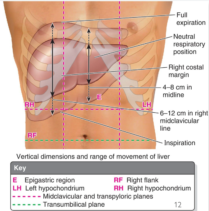 liver moves with the diaphragm → this mobility helps facilitate palpation during a physical exam