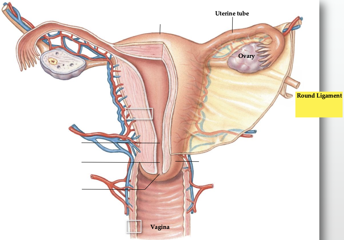 → produce the ovum (egg) which travels through the uterine (fallopian) tube to the uterus