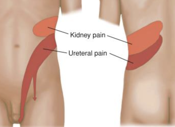 → Dull, aching pain in costovertebral angle (CVA) and flank