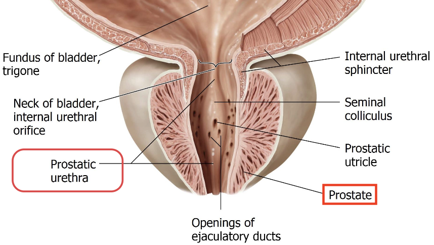 Ejaculatory duct (formed by ductus deferens and seminal vesicle duct)