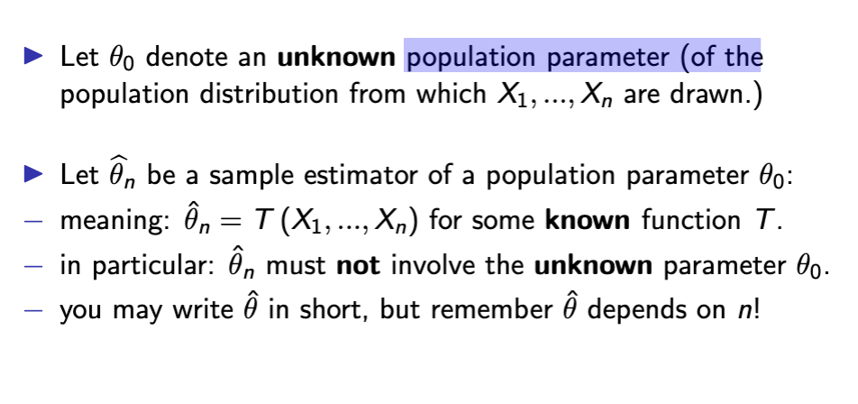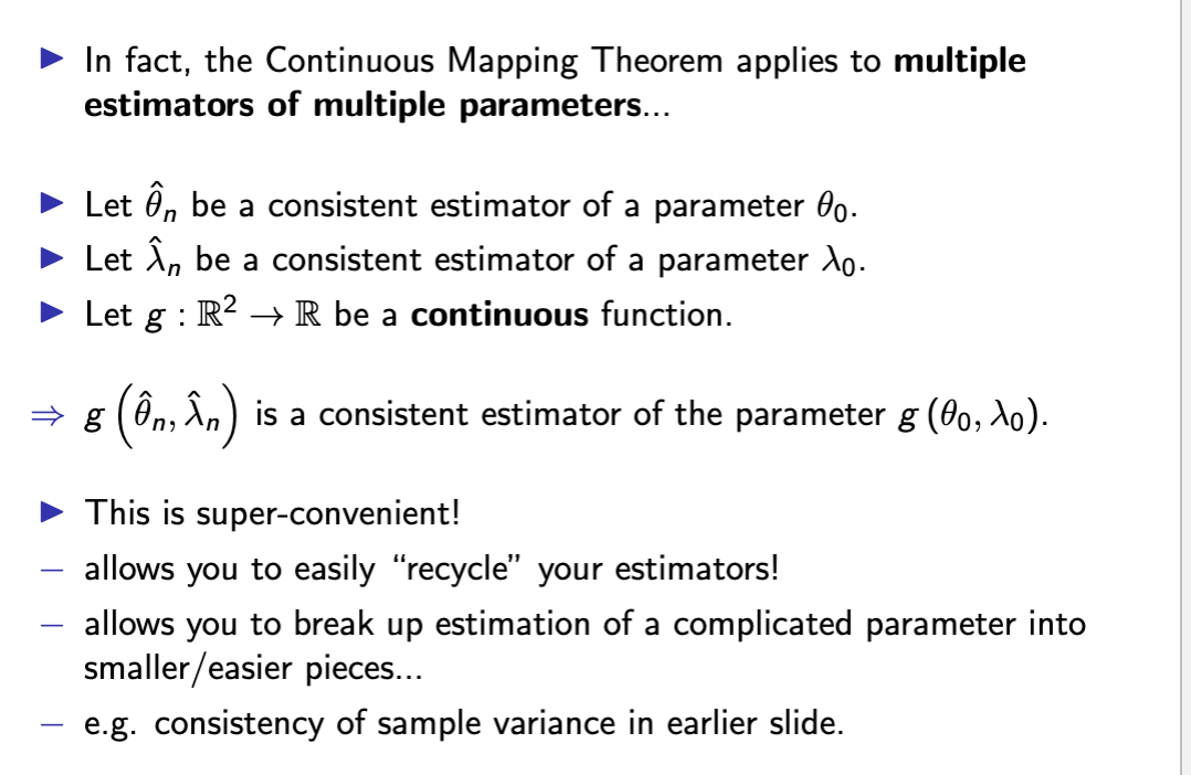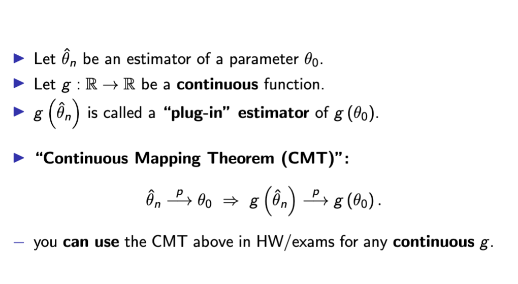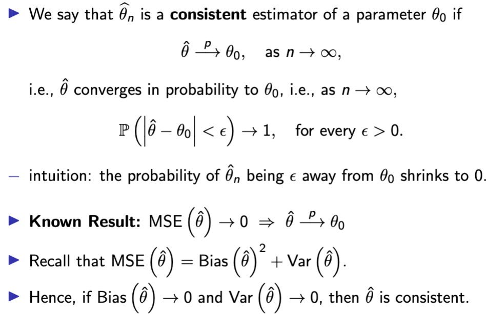 − e.g. various limits of bias, variance, MSE, distribution...