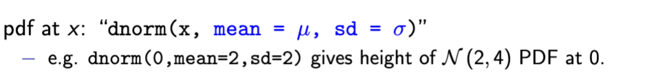 dnorm for N(0,1)