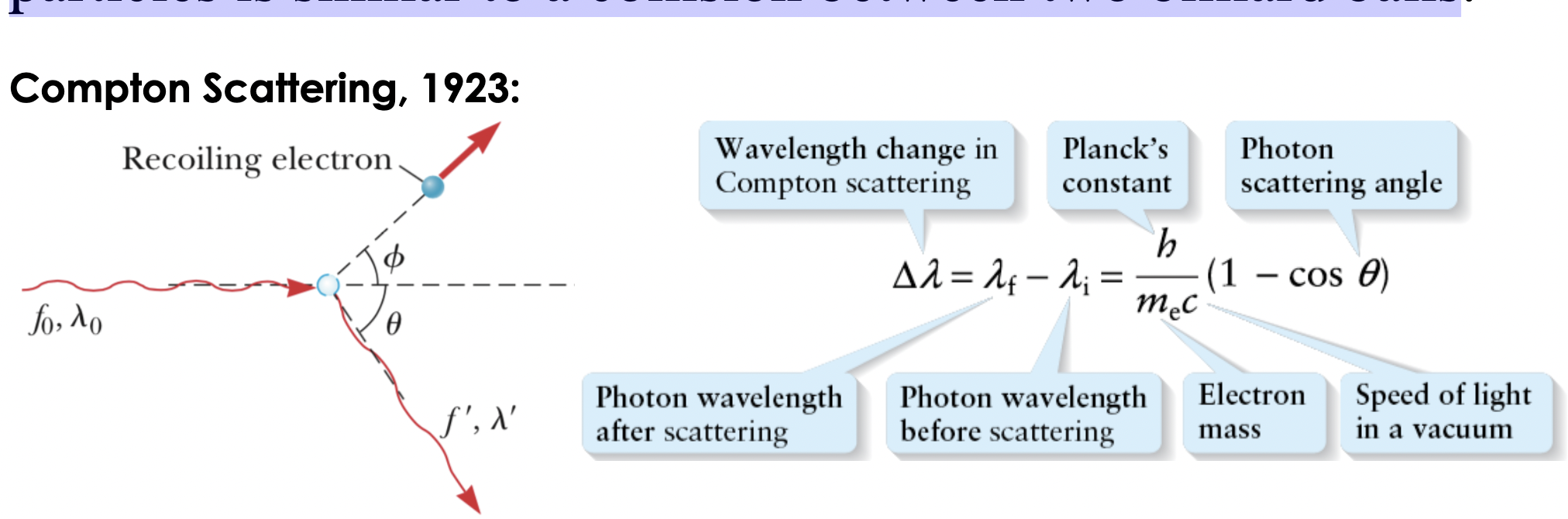 particles is similar to a collision between two billiard balls, causing change in wavelength and evidence that light exhibits particle behavior