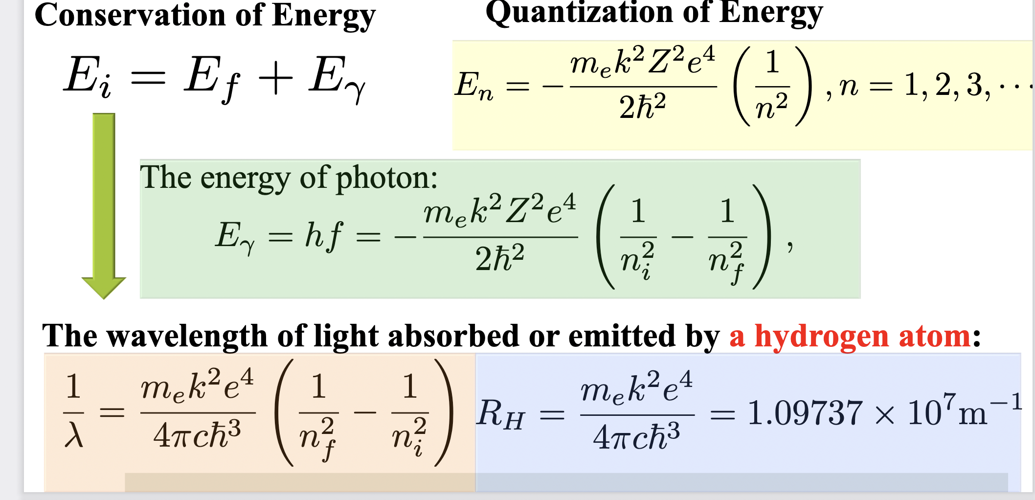𝜆=ℎ𝑐/(𝐸𝑚−𝐸𝑛)