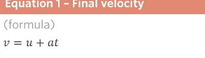 the variables arising in a situation involving constant acceleration