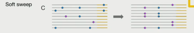 After the advantageous dominant allele attains high frequency, the alternative disadvantageous recessive allele is slowly eliminated → rare recessive alleles occur mostly in heterozygous forms -→ invisible to selection