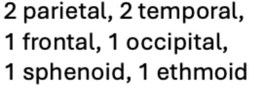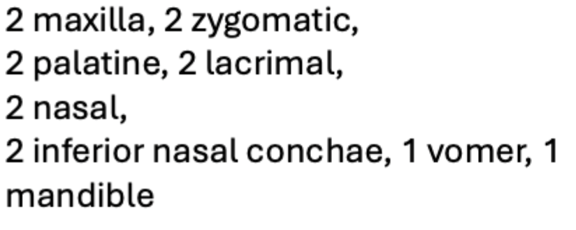 Medial wall of orbit: sphenoid, maxilla, lacrimal, ethmoid