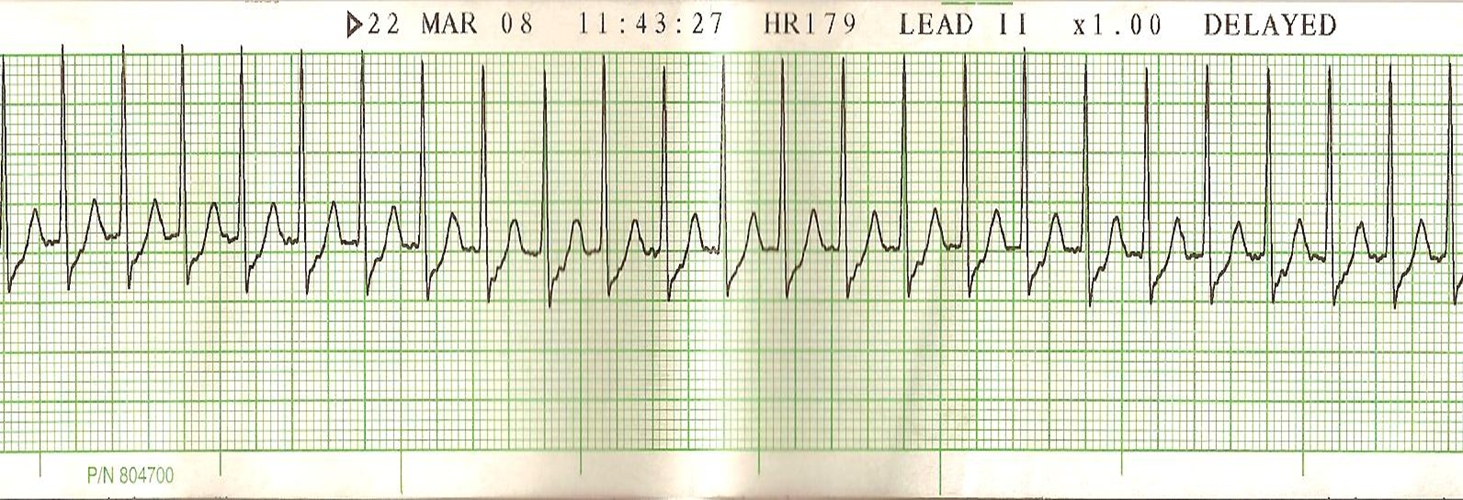 trial flutter- lots of P, not many QRS (travel in a loop). AV =more disorganized and faster (is worse)