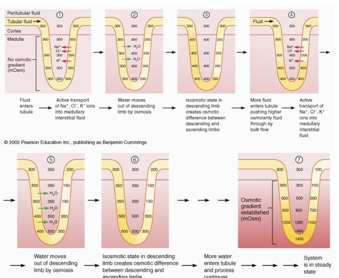 steps of countercurrent multiplication in loop of henle