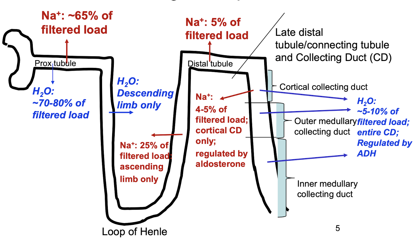 where are Na+ and H2O reabsorbed along the nephron?