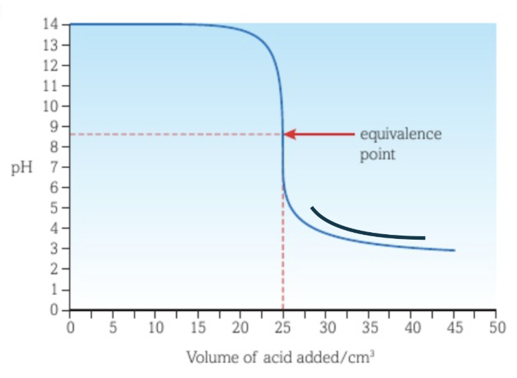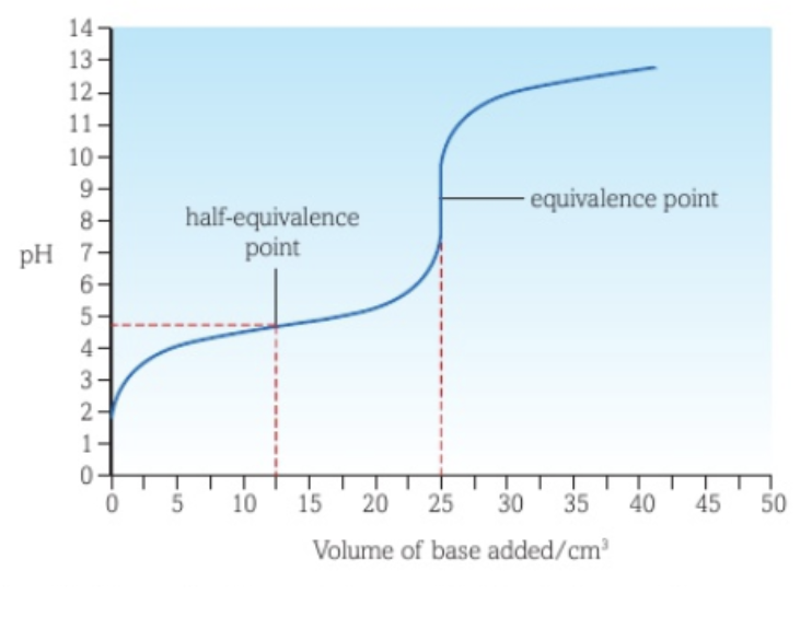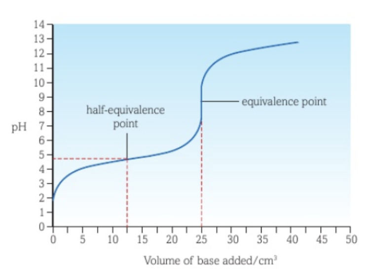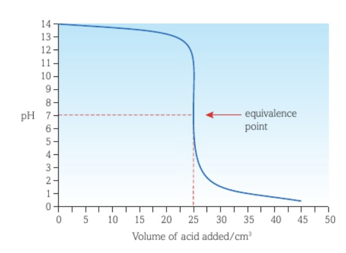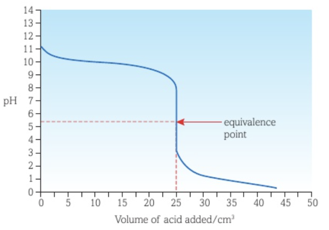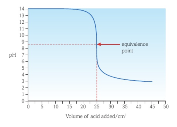 The pH range of the indicator’s change in colour should be in the pH range of the vertical part of the curve.
