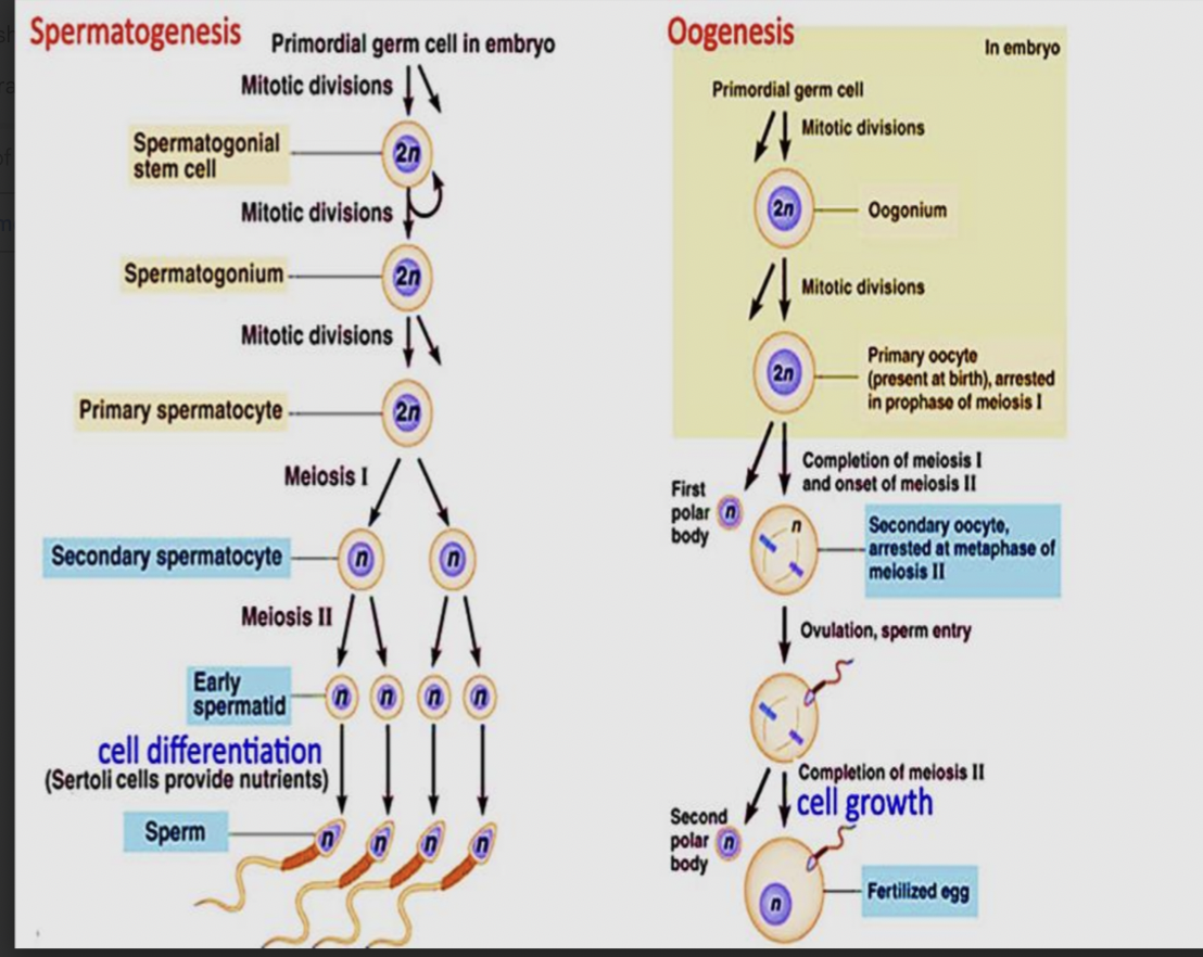 Testes → Interstitial cells of leydig (Testosterone) , Seminefrous tubules (sertoli cells of spermatogonia (spermatogenesis)