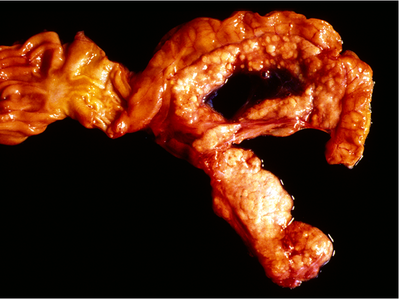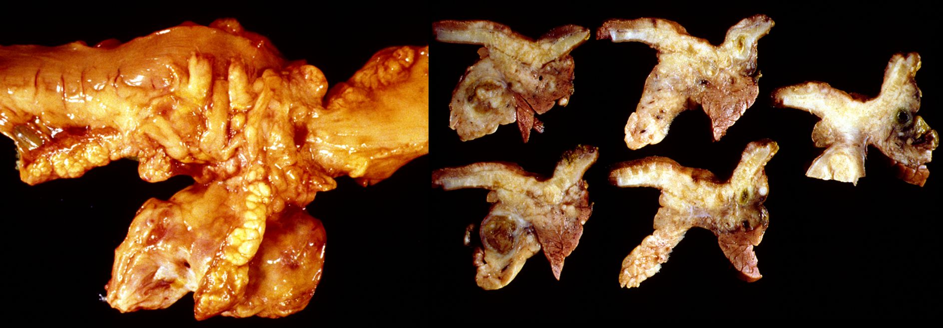 chronic interstitial pancreatitis w/ chronic cholangitis / cholangiohepatitis (& IBD) —> “triaditis”