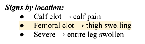 4. Symptoms of a DVT present for a week
