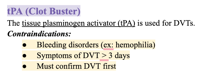 (5) DVT diagnosis from symptoms: it needs to be A CONFIRMED DIAGNOSIS. if it just ASSUMPTIONS, it is a.contraindication.