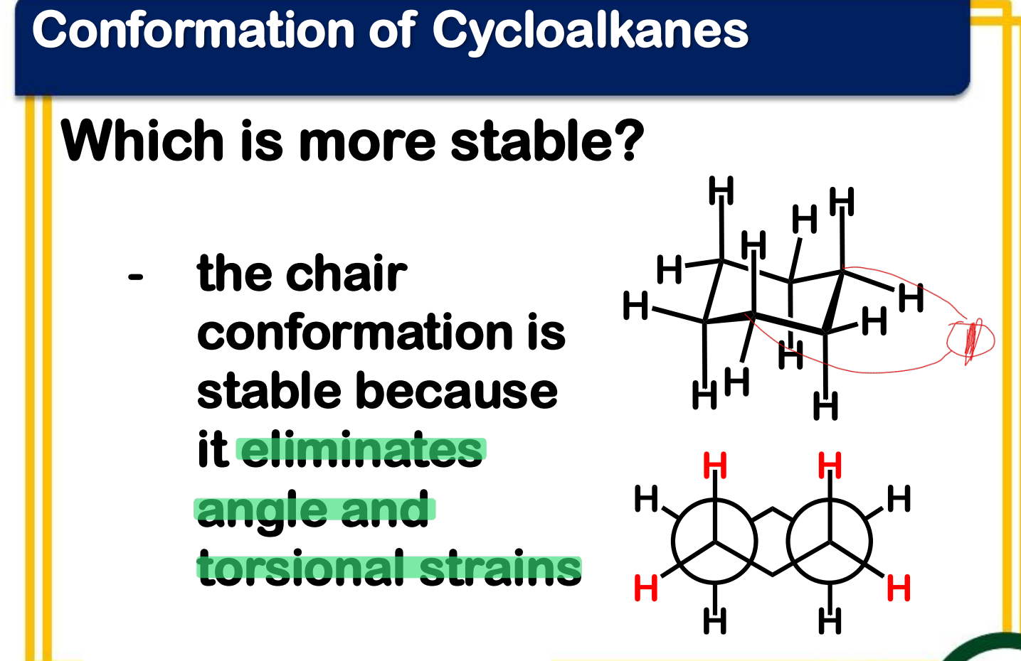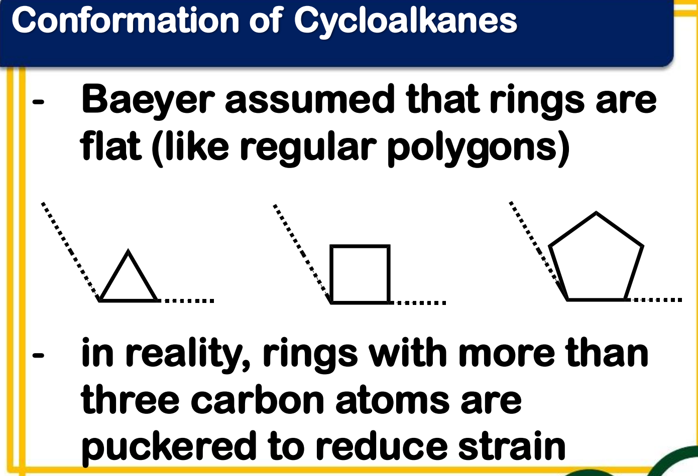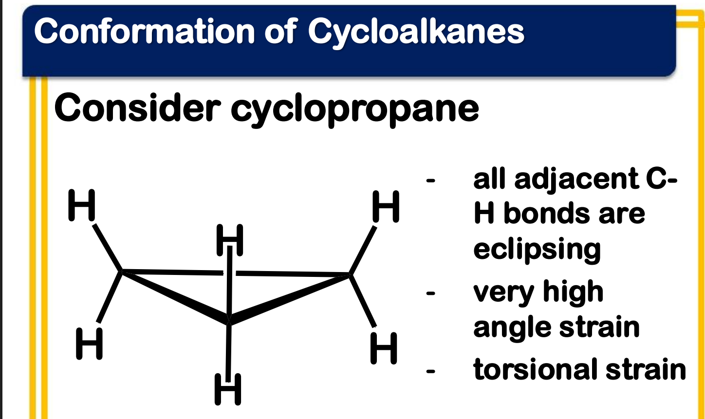 ____________________ - the bond angle in a perfect tetrahedron is 109°28’, then the amount of strain in a small ring compound would be the half the difference between the tetrahedral value and the internal angle of a regular polygon