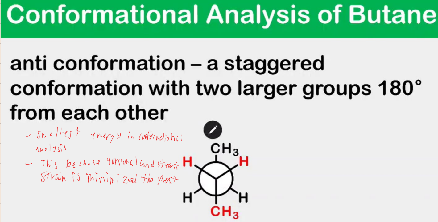 ____________ conformation - a staggered conformation with two larger groups 180°nfrom each other