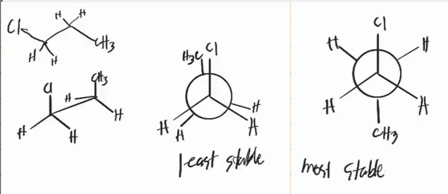 - the atoms bonded to carbon atoms at each end of a C-C bond are as far apart as possible