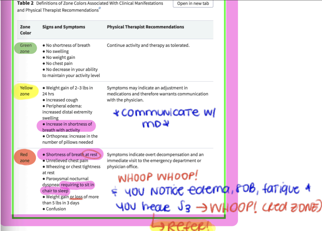 Understand signs and symptoms of the cardiac pathologies outlined in your handouts, along with the appropriate medical/surgical and physical therapy interventions, including exercise prescription.