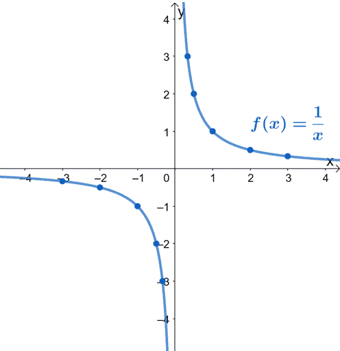 The reciprocal function is defined by f(x) = 1/x, x ≠ 0