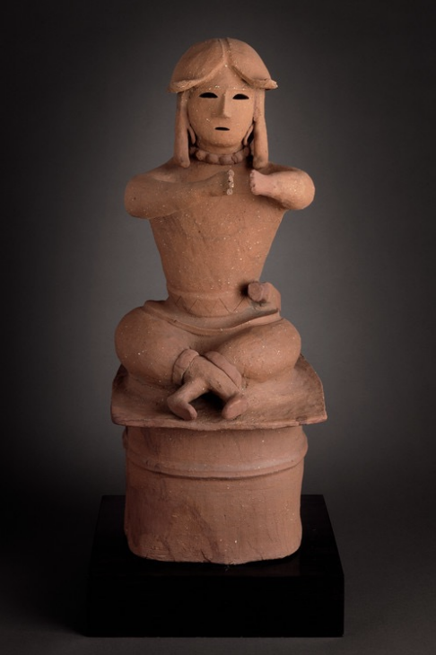 Vessel, 300s BCE, Yayoi period, earthenware with traces of red slip, 13 inches tall (Cleveland Museum of Art). Points to introduction of new ideals, techniques, and materials from Korea: rather than coils, wide bands of clay were smoothed into each other (a practice from Korea).