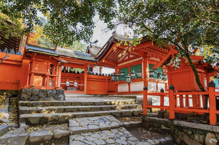 Kasuga Taisha — Shinto shrine in Nara founded in 768 by the powerful Fujiwara clan (‘field of wisteria’), it is one of Japan's most important sacred sites. There are some 3000 lanterns, all of which are lit twice each year. The adjacent Kasugayama primeval forest is also celebrated; logging and hunting have been prohibited since 841.