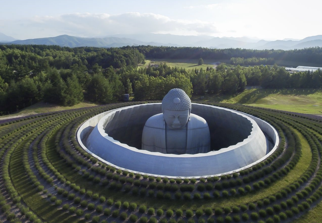 Ando Tadao, Hill of the Buddha, 2015, Sapporo. The shrine features a 44ft tall Buddha encircled by an artificial hill rotunda planted with 150,000 lavender plants. The statue was sculpted around 2000.