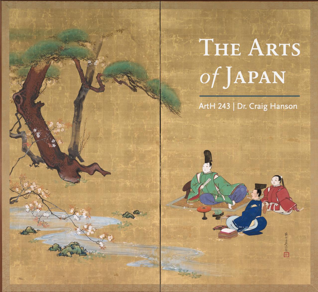 Zeshin, Narihira Viewing Cherry Blossoms, from 'The Tales of Ise', ca. 1880s, two-panel folding screen with ink, color, lacquer, and gold on silk, 69 × 75 inches (Cleveland Museum of Art).