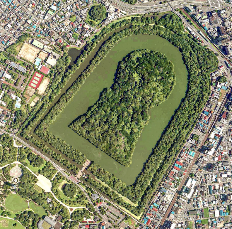 Tomb of Emperor Nintoku in Sakai (near Osaka), ca. 400. The surface of the mound may have been covered with 20,000 haniwa.