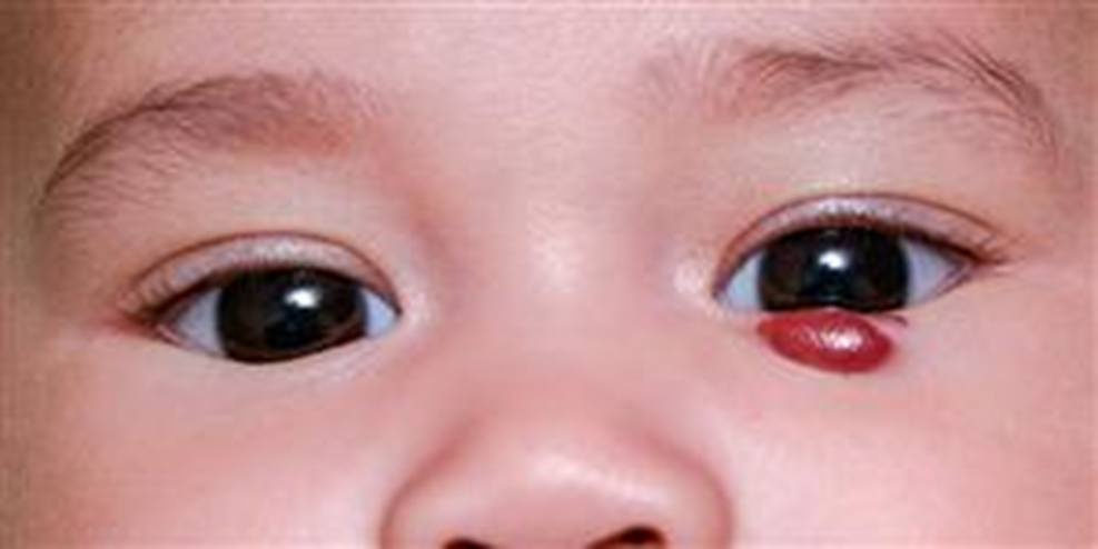 can occur on upper lid - causing droopy lids - may drop visual axis and affect visual development - press on cornea - rare !