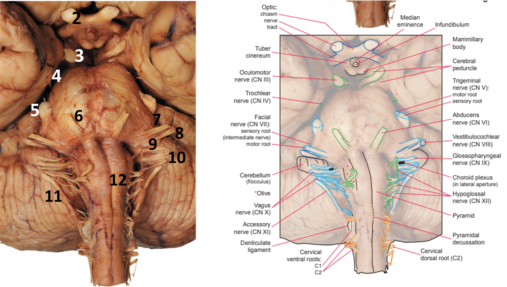cranial nerve nuclei + tracts + reticular formation