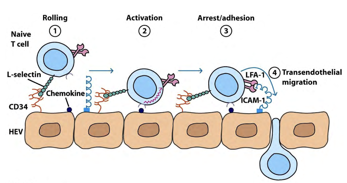 T cells utilize L-selectin to interact with sialomucin present on the surface of the high endothelial venule (HEV)