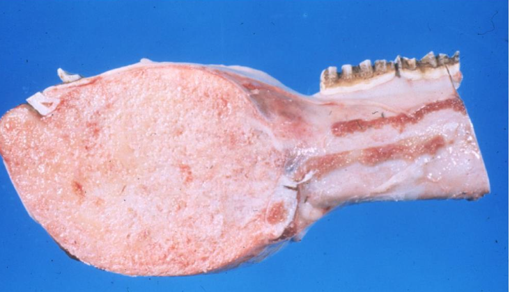 uncommon masses in the maxillae and mandibles of horses less than a year of age and cattle that can destroy adjacent cortical trabecular bone by expansile growth