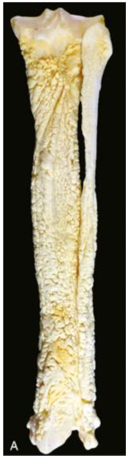 What has occurred in this canine tibia and fibula? note the dog also had an intrathoracic mass.