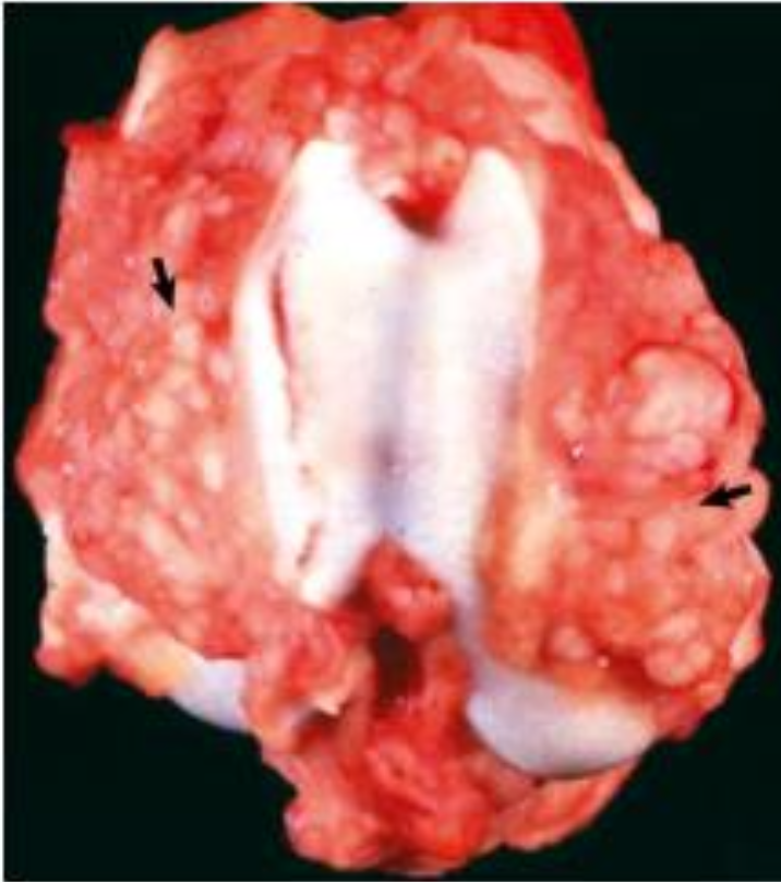 steroid responsive meningitis/arteritis, neoplasia, or SLE (systemic lupus erythematosus)