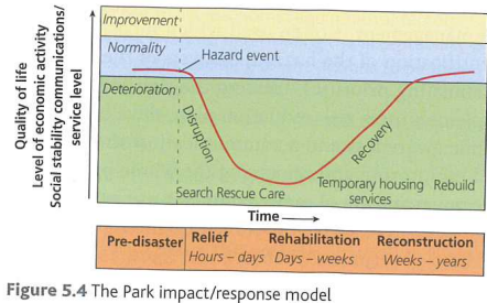 Reconstruction: infrastructure/property reconstructed & crops regrown, people use experience for better response to next hazard (weeks to several years)