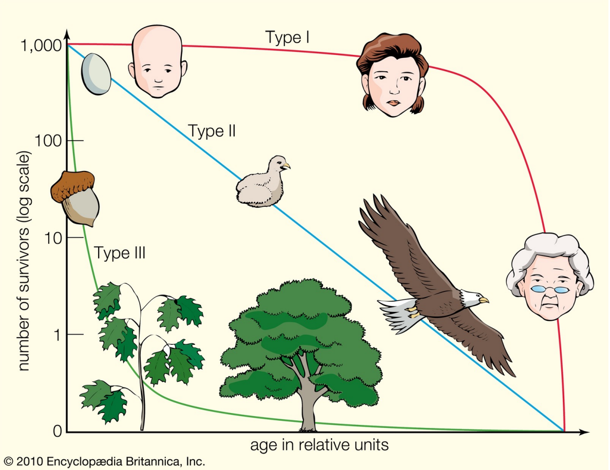 Survivorship curve | Type I or II |