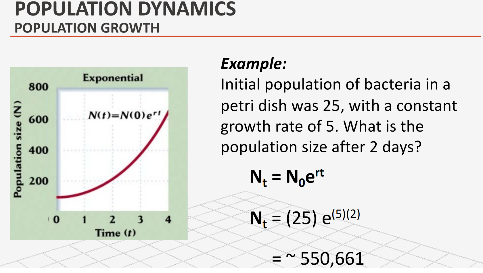 Example: Initial population of bacteria in a petri dish was 25, with a constant growth rate of 5. What is the population size after 2 days?