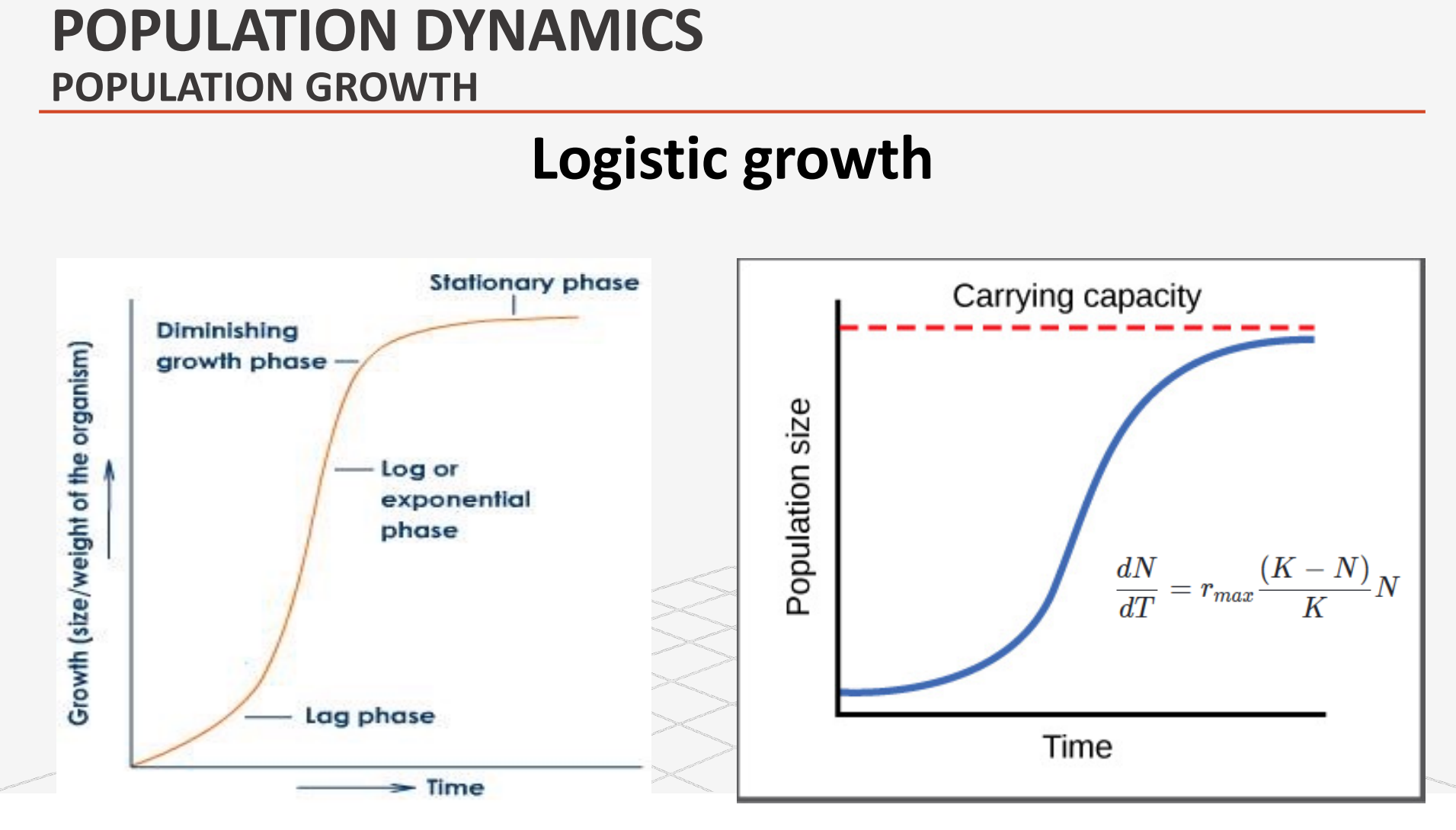 N < K - r = positive - pop. growth: increase