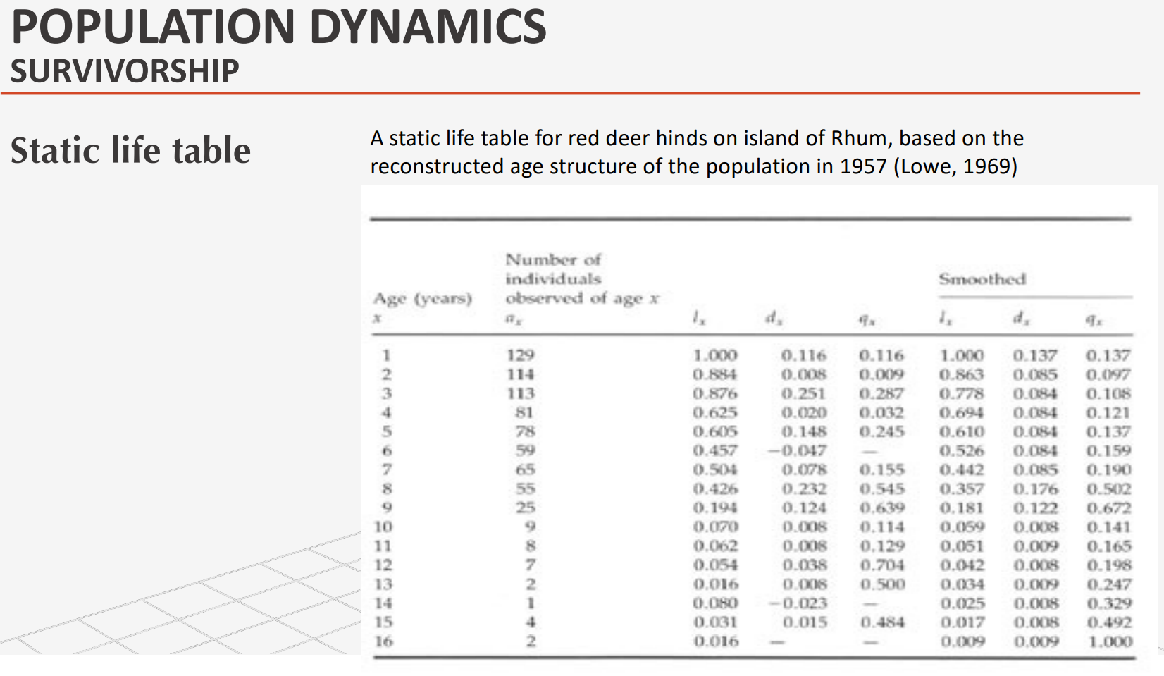 Static life table