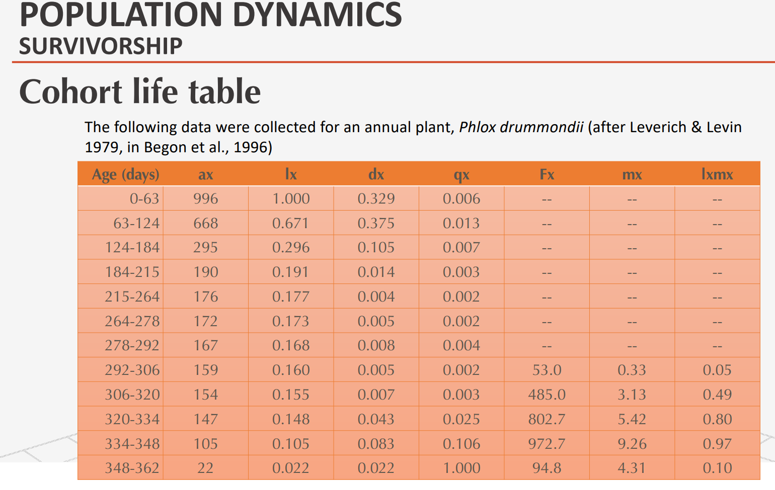 recorded and analyzed using a life table
